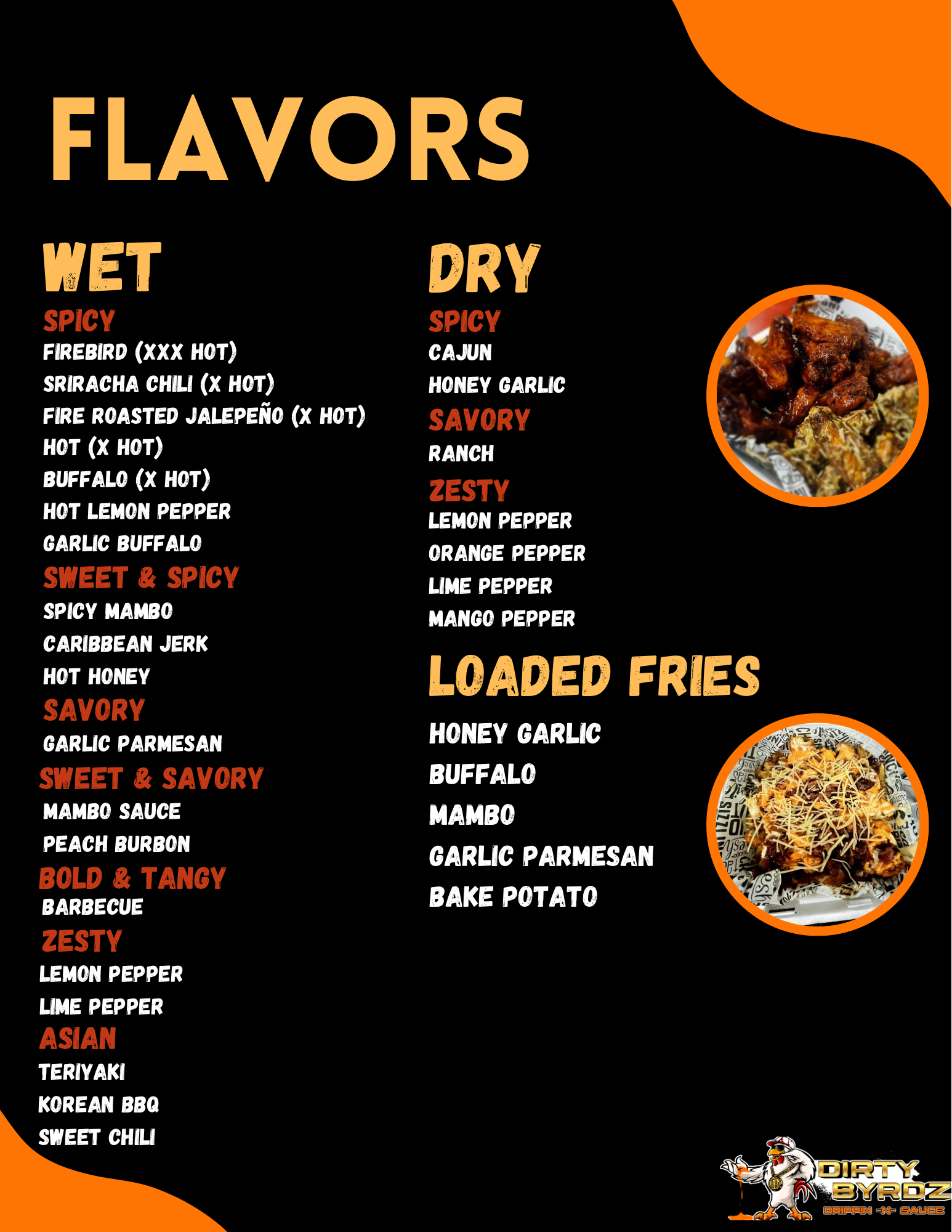 Dirty Byrdz Menu
