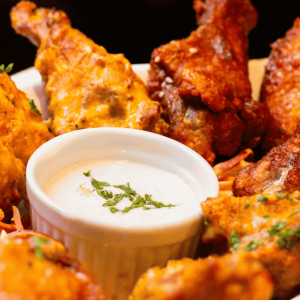 The *PARTY PACK* 50 Boneless Wings includes: Up to Three (3) Wing Flavors Two (2)…