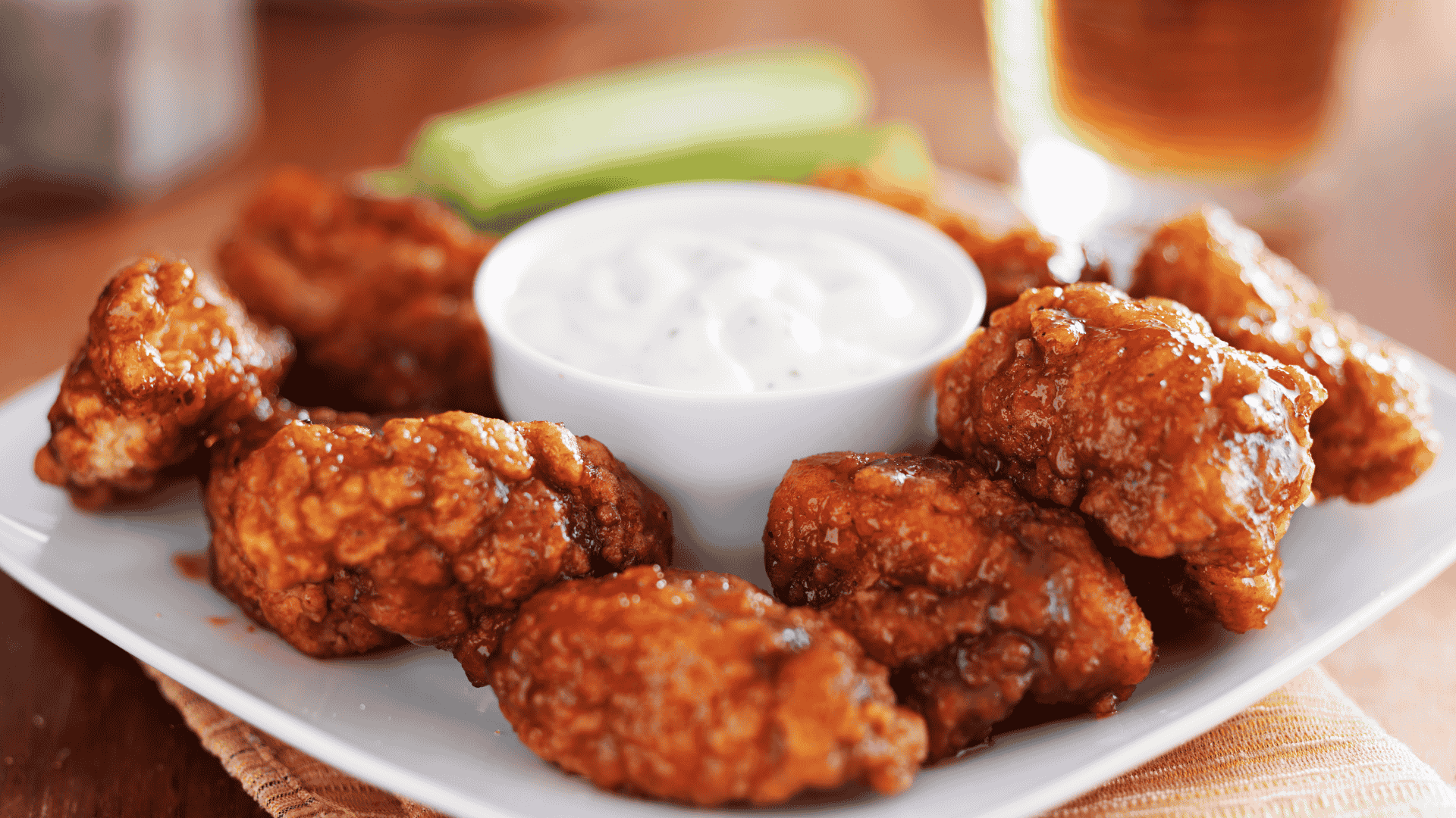 - Two (2) Dipping Sauces (Ranch or Blue Cheese)